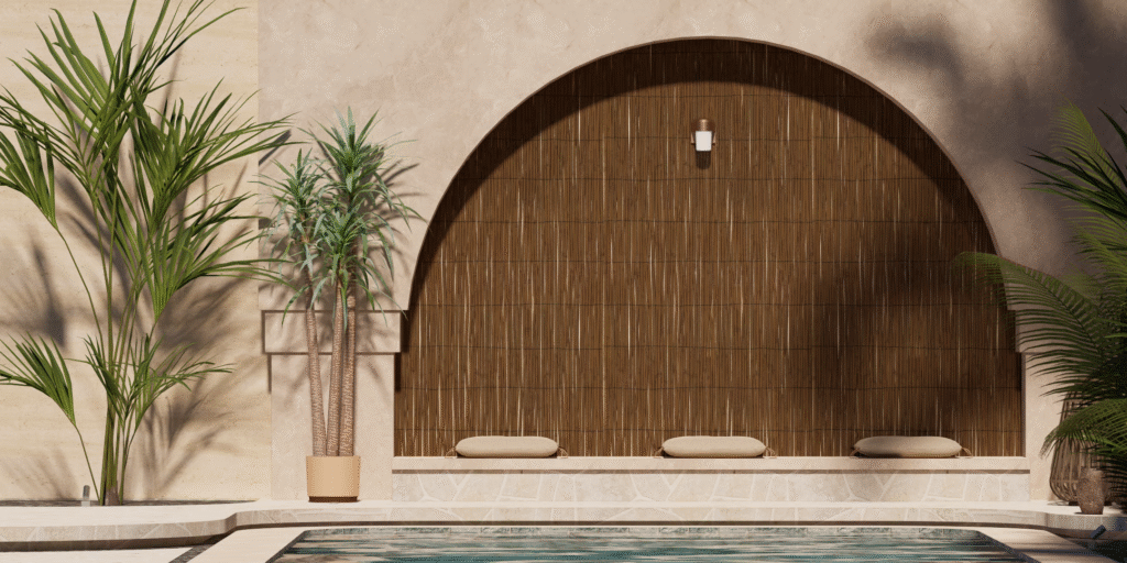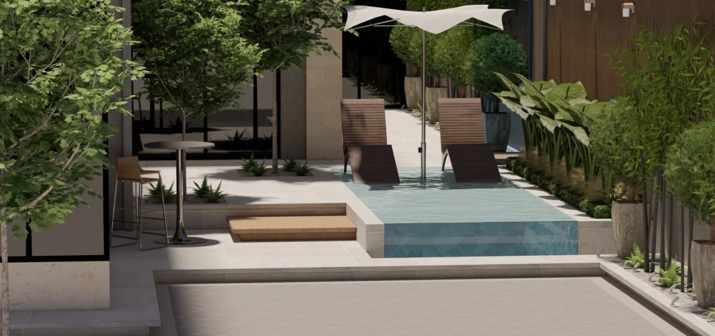 تم استلام طلب من العميل لتصميم الفناء الخارجي بطابع بوهيمي يجمع بين الأناقة والراحة، مع استخدام مواد متنوعة ومتناغمة. يشمل المشروع إضافة مسبح، جلسة مميزة بأجواء مريحة، وتنسيق أعمال الزراعة بأسلوب ينسجم مع الطابع البوهيمي . الهدف من التصميم هو خلق مساحة تعكس أسلوب حياة مريح وتعزيز شعور الاسترخاء مع تفاصيل مستوحاة من الجمال الطبيعي .