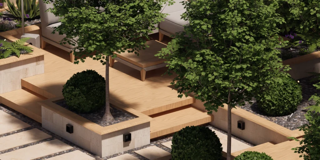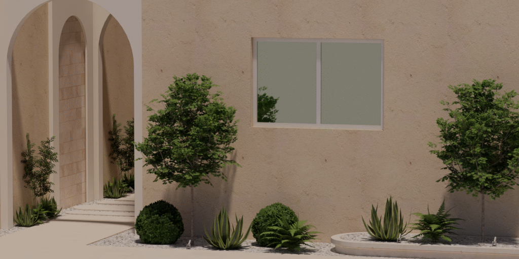تم تلبية طلب العميل في تصميم الفناء الخارجي لفيلا خاصة بأسلوب حديث وبسيط مع التركيز على استخدام مواد ذات ألوان هادئة تتناغم مع تصميم المنزل. يتضمن التصميم توزيع الإضاءة بشكل مدروس لإبراز العناصر الجمالية ليلاً، مع تنسيق أعمال الزراعة لإضفاء لمسة طبيعية تكمّل الطابع العصري للفناء .